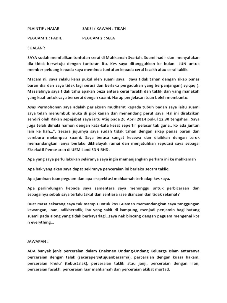 Contoh Kes Cerai Di Malaysia